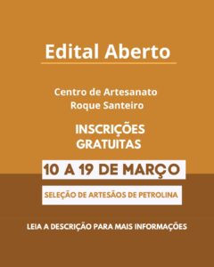 Fundação Nilo Coelho abre edital para seleção de artesãos que irão expor no Centro de Artesanato Roque Santeiro, em Petrolina Leia mais »