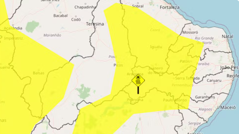 ‘Perigo potencial’: Inmet publica alerta amarelo de baixa umidade para 39 municípios do interior de PE