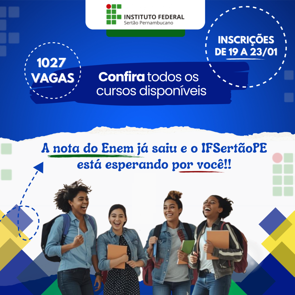 O Instituto Federal do Sertão Pernambucano (IFSertãoPE) disponibilizou 1.027 vagas, em 33 cursos, para o Sistema de Seleção Unificada (Sisu), que utiliza as notas do Exame Nacional do Ensino Médio (Enem) para ingresso em cursos superiores. As inscrições seguem até sexta-feira (23) pelo site do sistema. Os candidatos que optarem por tentar uma vaga no IFSertãoPE […]